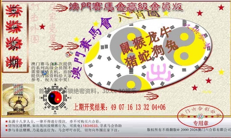 | 第296期⑥肖:猴鼠虎兔马牛 |