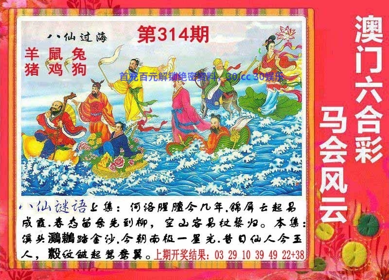 314期八仙谜语:溪头鴻鶇踏金沙,今朝南极一墨光,昔日仙人今玉人,觳纹皱起鸳鸯翼。 解释:溪头鴻鶇踏金沙,今朝南极一墨光,昔日仙人今玉人,觳纹皱起鸳鸯翼。解蛇兔龙羊虎狗猪 综合特肖:蛇兔龙羊虎狗猪 |
